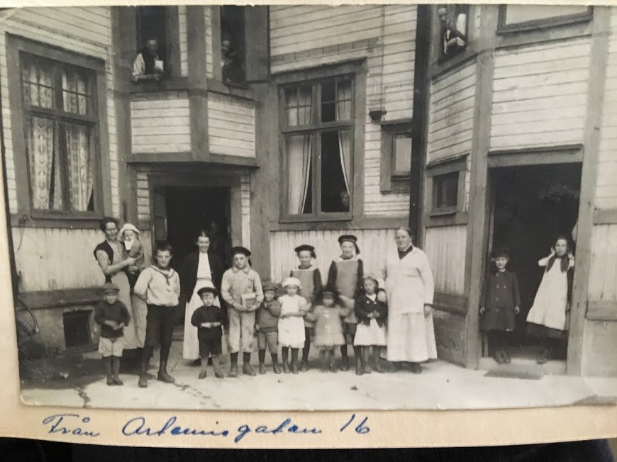 Mamma berättar: ”Min pappa Oscar var duktig i skolan. Han gick i Djurgårdsskolan och hans lärare hette doktor Winslov. Denne tyckte att Oscar borde studera vidare, men farfar, som själv hade fått arbeta sig fram, ansåg att sonen skulle göra detsamma. Oscar skickades i femtonårsåldern till Amerika där han skulle lära sig byggnadsbranschen. Efter besök i hemlandet återvände han till Amerika där han stannade i några år. Han talade senare mycket om den tiden och skröt gärna om det han upplevt där.